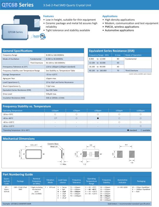 Quarztechnik晶振,QTC6B晶振,QTC6B12.0000FBT3I30R晶振
