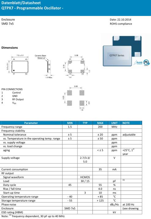 Quarztechnik晶振,QTPX7晶振,7050mm有源晶振