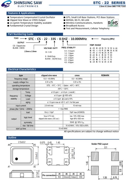 SHINSUNG晶振,STC-22晶振,STC-CS-22-33S-0.5HZ-10.000MHz晶振