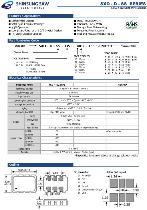 SHINSUNG晶振,SXO-D-SS晶振,SXO-D-SS-33ST-30HZ-155.520MHz晶振