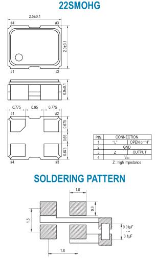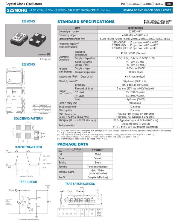 22SMOHG(F) : ±15 ppm over -40゜C to +85゜C 22SMOHG(G) : ±10 ppm over -40゜C to +85゜C 22SMOHG(H) : ±8 ppm over -40゜C to +85゜C |