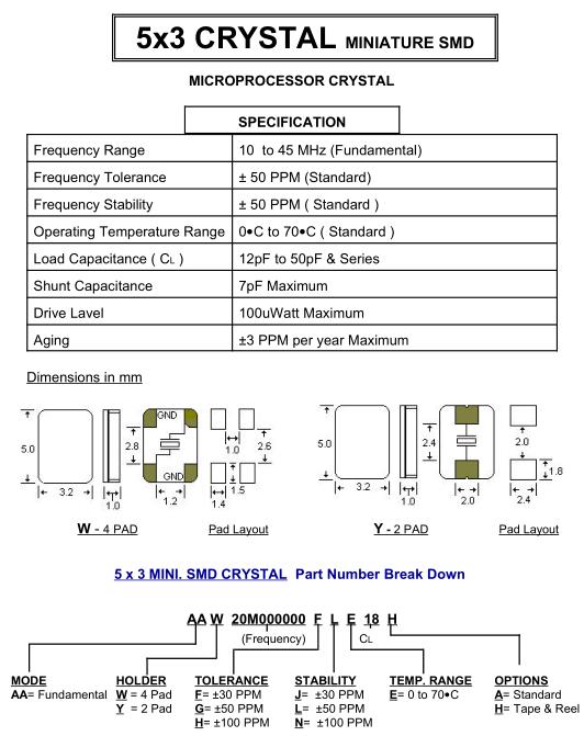 | Load Capacitance ( C L ) | 12pF to 50pF & Series |