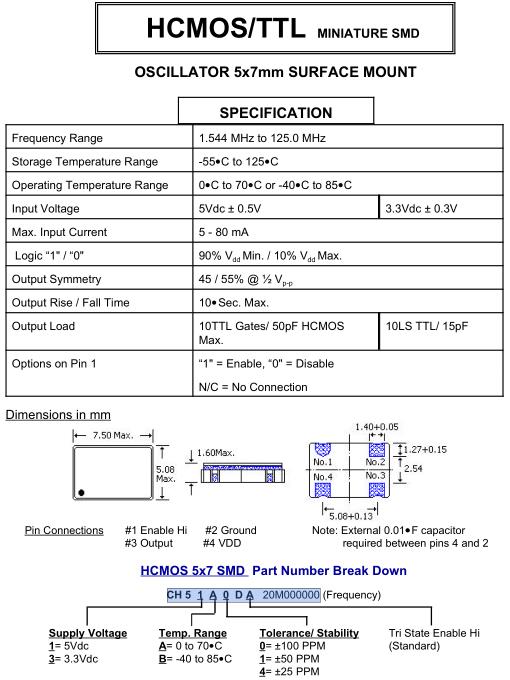 | Output Load | 10TTL Gates/ 50pF HCMOS |
