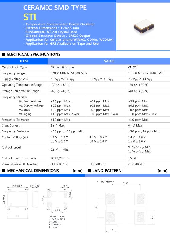 Sunny晶振,STI晶振,STI3320HS5–16.000M晶振,具有最適合于移動通信設備用途的高穩定的頻率溫度特性.為對應低電源電壓的產品.(可對應DC+1.8V±0.1Vto+3.2V±0.1V)高度:最高1.0mm,體積:0.007cm3,重量:0.024g,超小型,輕型.低消耗電流,表面貼片型產品.(可對應回流焊)無鉛產品.滿足無鉛焊接的回流溫度曲線要求.優秀的研究具有滿腔的熱情為高科技發展的最佳實驗室SUNNY是在世界市場上的競爭力,電子行業的發展趨勢和產品的開發,以保證開發趨勢和多邊角度來看,如提高性能和工藝改進的產品和零部件制造商進行專門討論第二類產品開發的系統研究.