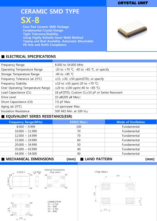 Frequency Range 8.000 to 54.000 MHz Operating Temperature Range -20 to +70 ℃, -40 to +85 ℃, or specify Storage Temperature Range -40 to +85 ℃ Frequency Tolerance (at 25 ℃) ±15, ±30, ±50 ppm(STD), or specify Frequency Stability