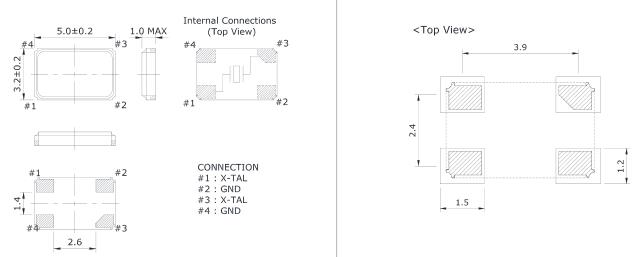 ±20 to ±100 ppm(-40 to +85 ℃)Load Capacitance (CL) 18 pF(STD), Custom CL≥10 pF or Series Resonant Drive Level 10 μW(200 μW Max.) Shunt Capacitance (C0) 7.0 pF Max. Aging (at 25 ℃) ±3 ppm/year Max. Insulation Resistance 500 MΩ Min. at 100 V DC