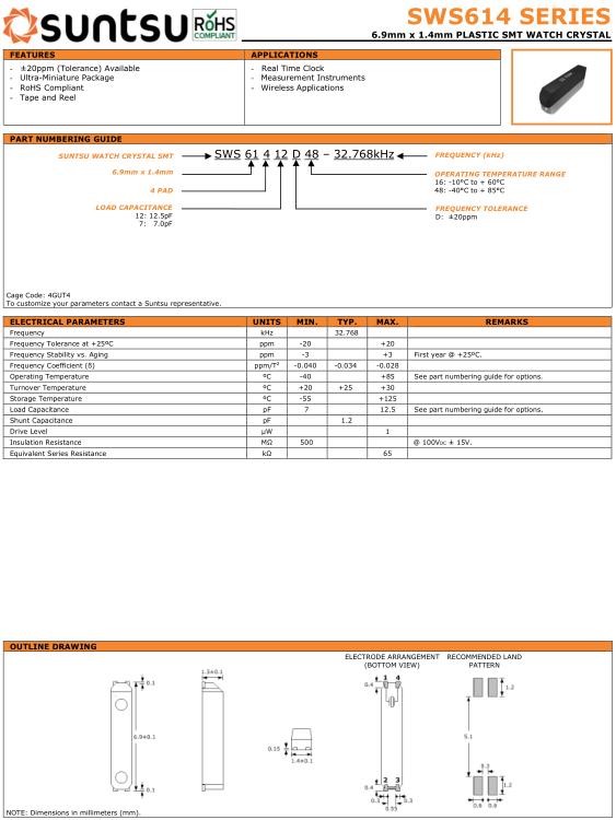 Suntsu晶振,SWS614晶振,SWS61412D48–32.768kHz晶振