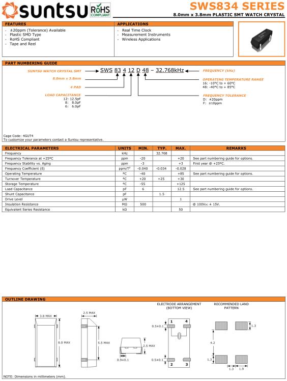 Suntsu晶振,SWS834晶振,SWS83412D48–32.768kHz晶振