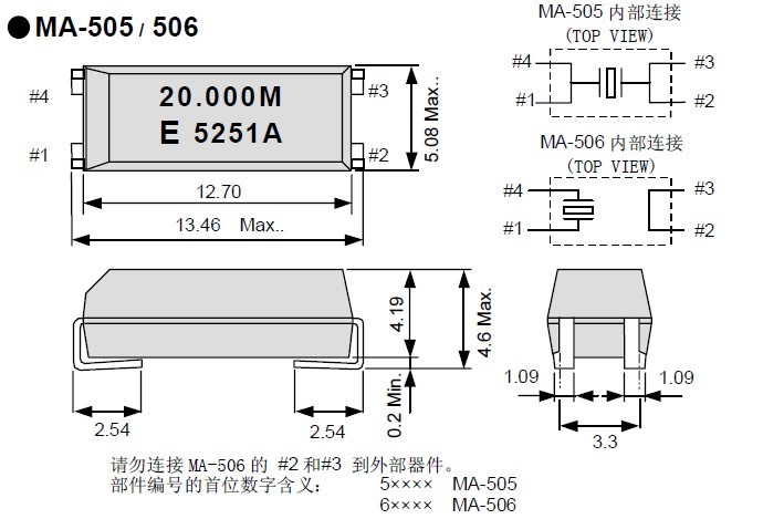 "MA-505 12.0000M-C0:ROHS",在晶體單元上施加過多驅動力,會導致產品特性受到損害或破壞.電路設計必須能夠維持適當的激勵功率.