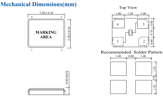 | Size/Dimension尺寸 | 3225無源貼片晶振 | 安裝方式 Installation: | Surfacemount |