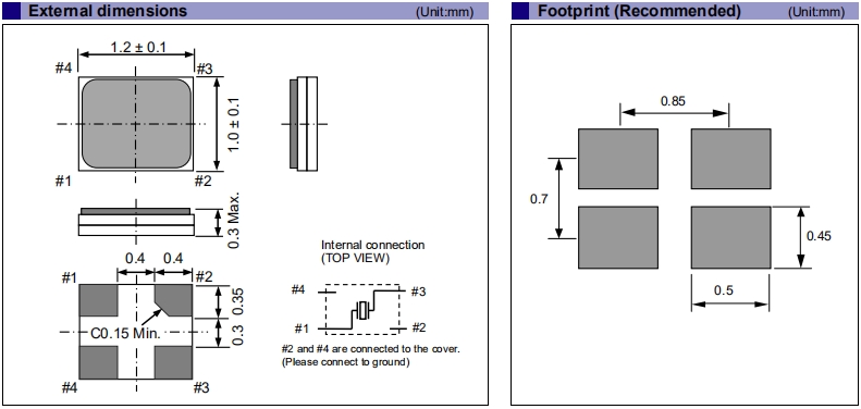 在一個不同擴張系數電路板(環氧玻璃)上焊接陶瓷封裝貼片晶振時,在溫度長時間重復變化時可能導致端子焊接部分發生斷裂,請事先檢查焊接特性.