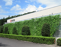 墻面綠化(福島棚倉(cāng)工廠) 京瓷集團(tuán)開(kāi)展墻面綠化活動(dòng),利用苦瓜、絲瓜、牽牛花等爬蔓植物覆蓋窗戶,遮擋夏季的強(qiáng)烈日照,從而達(dá)到有效抑制室內(nèi)溫度上升的效果.