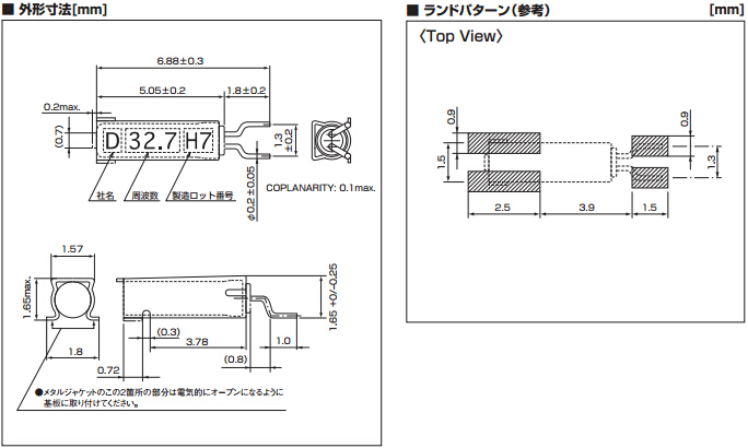 - 產品描述:超小型、薄型、質地輕的表面貼片音叉型晶體諧振器、具備優良的耐熱性、耐環境特性、在辦公自動化、家電領域、移動通信領域可發揮優良的電氣特性、符合無鉛標準,滿足無鉛焊接的回流溫度曲線要求、金屬外殼的使用使得產...