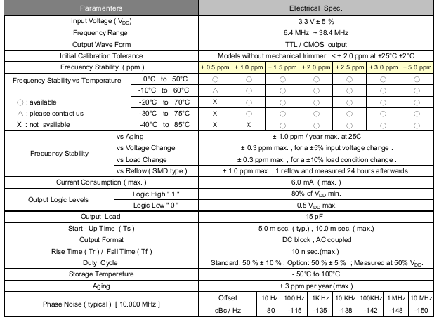 - 頻率:6.4 MHz ~ 38.4 MHz