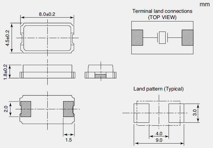 | 標(biāo)準(zhǔn)頻率(L×W×H : mm) | 8.0×4.5×1.8 | |
