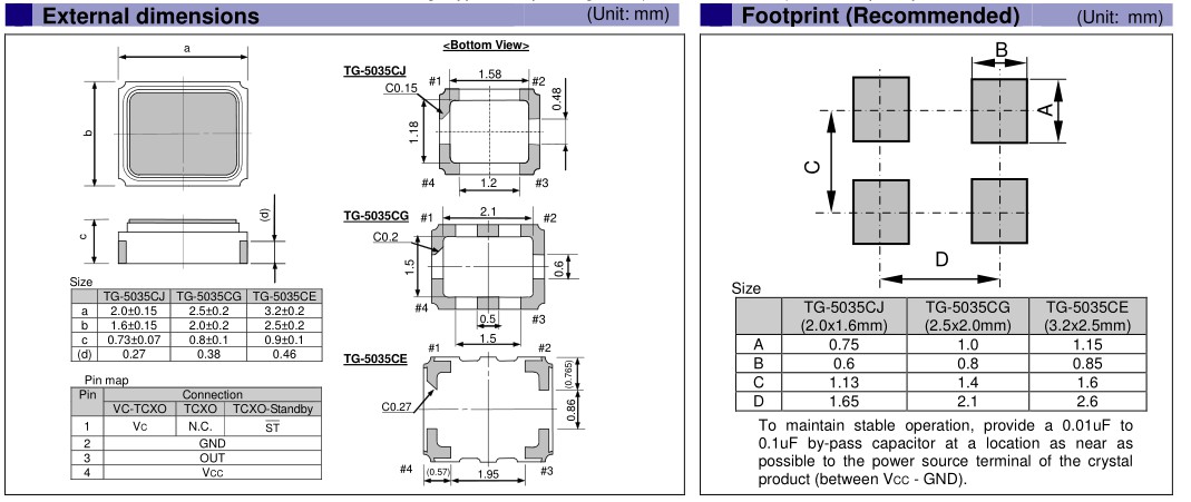 EPSON晶振,VC-TCXO振蕩器,TG-5035CE晶振,小型晶振