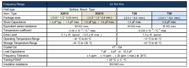 • 頻率:32.768KHZ