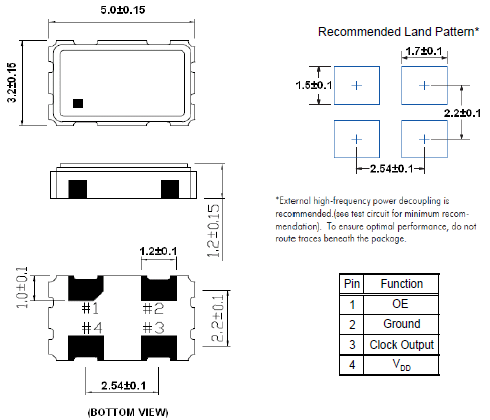 | 頻率溫度特征 | f_tem | ±30 × 10-6/-20°C ~ +70°C | 超出標準的規格請聯系我們. |