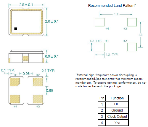 | 頻率溫度特征 | f_tem | ±30 × 10-6/-20°C ~ +70°C | 超出標準的規格請聯系我們. |