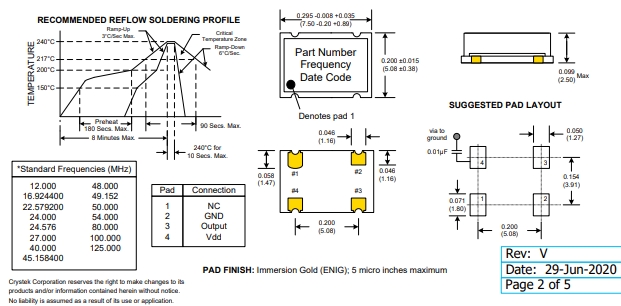 | C3291-2.048 | Crystek晶振 | C3291 | XO | 2.048MHz | HCMOS,TTL | 5V |