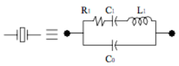 示出了石英晶體振蕩器的等效電路,以解釋控制晶體特性和性能的基本元素.它由運動電容C1,電感L1,串聯(lián)電阻R1??和分流電容C0組成.前三個參數(shù)被稱為石英晶體元件的“運動參數(shù)”.